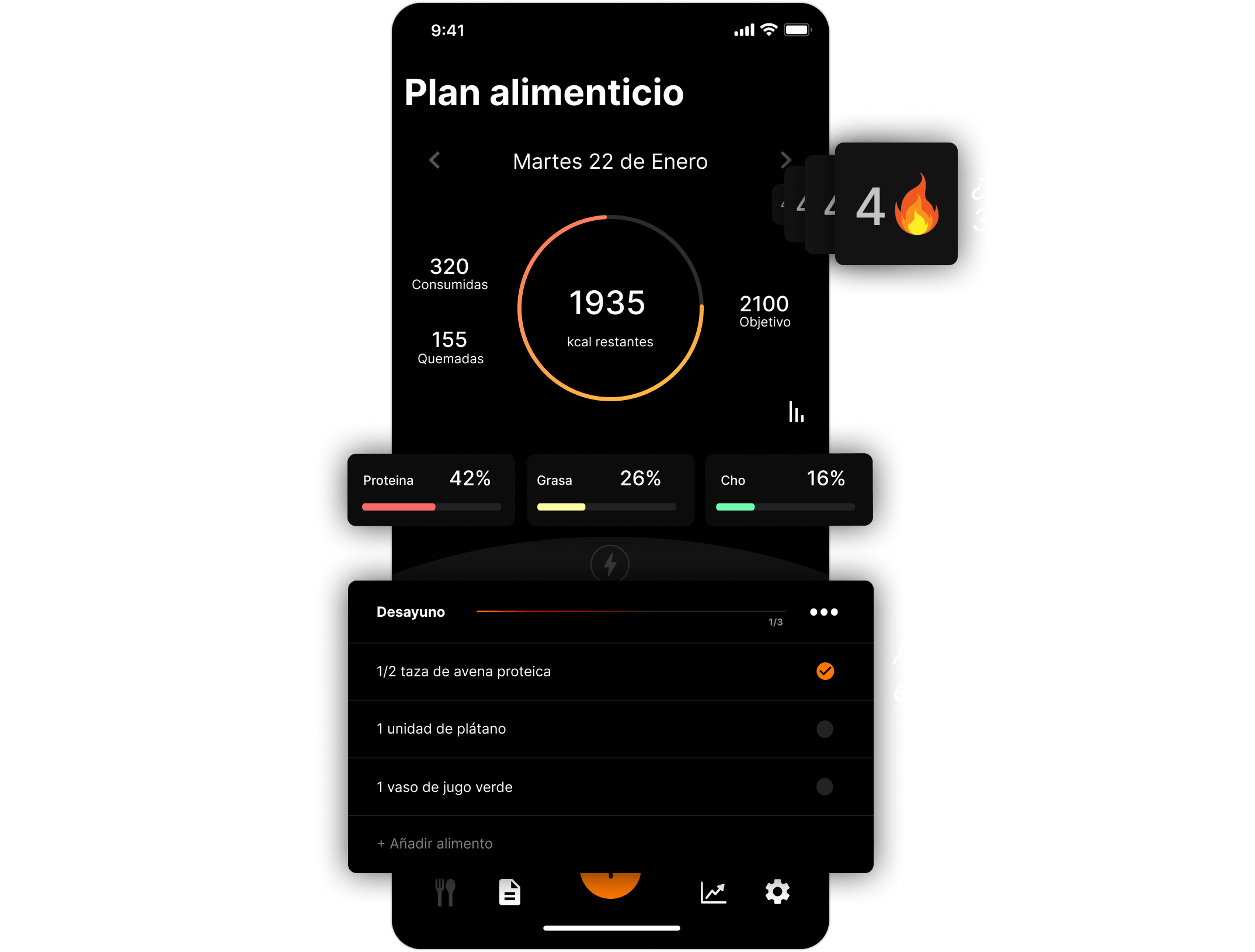 Registra los alimentos que consumes a lo largo del día y llega a tus macros fácilmente